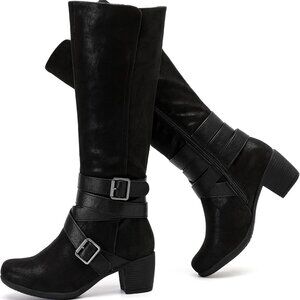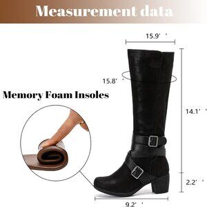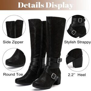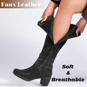 Women's Knee High Boots with Chunky Heel, Pointed Toe, Comfortable and Fashionab