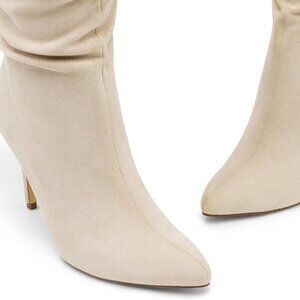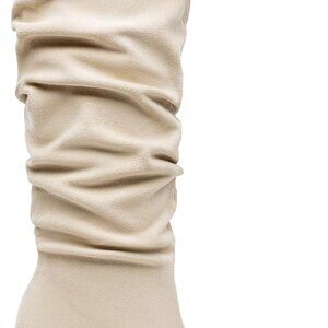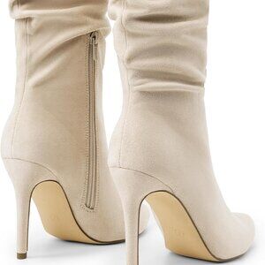 Features: These knee-high boots feature a chic slouch shaft that visually elongates your legs by reducing contrast between calf and ankle. The high stiletto heel (about 3.94 inches) adds height and confidence. Easy zip closure with an inner side zipper makes them a breeze to slip on and off. They’re lined with a vegan leather-covered insole for comfort and arch support, plus a sturdy tunit outsole for stability.