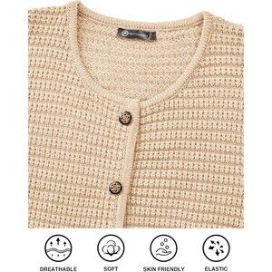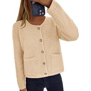 Women's Knit Cardigan Sweater – Chunky Button Down Open Front Jacket Beige XL