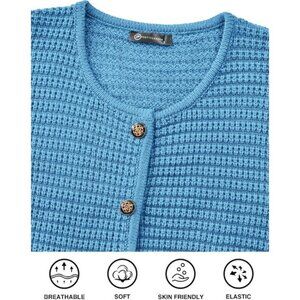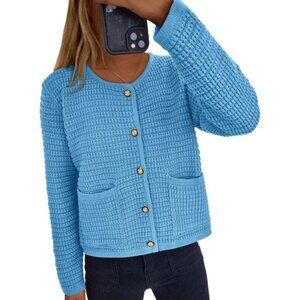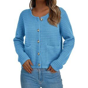 Women's Knit Cardigan Sweater – Chunky Button Down Open Front Jacket Blue Medium