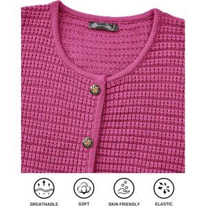 Women's Knit Cardigan Sweater – Chunky Button Down Open Front Jacket Pink Large