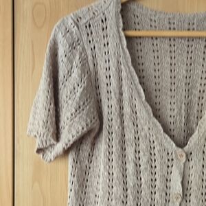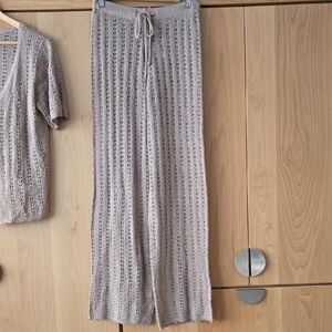 Cozy knit lounge set with short-sleeve cardigan and drawstring pants. Perfect for relaxed elegance. very good condition, small, unbranded but looks $$$$$hygge vibes