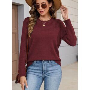 Women's Knit Sweater Soft V Neck Long Sleeve Casual Fall Wear Top
