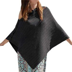 Women's Knitted Shawls Scarf Poncho Sweater Black2