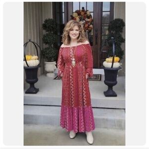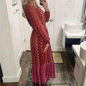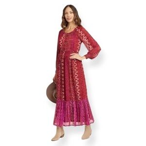 Women's - Knox Rose Deep Hibiscus Long Sleeve Maxi Dress Smocked Mesh Dress new
