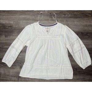 Women's Knox Rose White Peasant Blouse Pullover Size Small Rayon Cotton