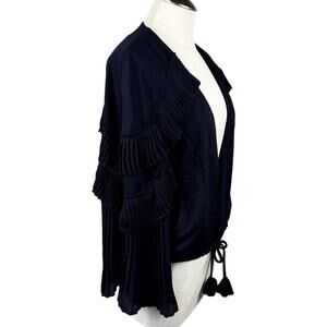 Womens Kobi Halperin Navy Carissa Pleated Open Front Ruffle Sleeve Jacket Small