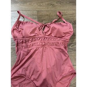 Women's Kona Sol Gathered Modern One Piece Swimsuit Mauvewood Large swim 1222