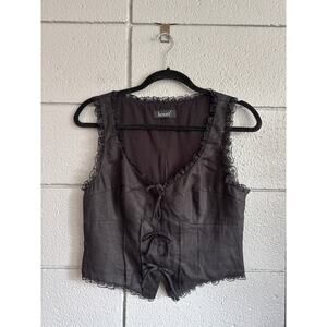 Women's Kourt Giogia Linen Bow Top in Black size 6 Coquette Whimsigoth Girly