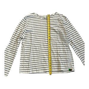 The Women's Kule Black White The Modern Long Sleeve Cotton T-Shirt Top in size L is a stylish and versatile piece perfect for casual wear. Made from 100% cotton jersey fabric, this top features a classic crew neck and a pullover closure for easy wear. The black and white striped pattern adds a modern touch, while the regular fit ensures comfort and a flattering silhouette. Whether for everyday outings or a casual day out, this top from Kule is a must-have in any woman's wardrobe.