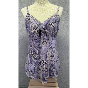 Womens L Babydoll Purple Paisley Sequin Top Tie Front Y2K V Neck Fairy Coquette