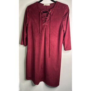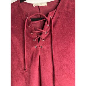 Women's L Dress Burgundy Boho Grunge Flowy Tie Front Cottagecore Chic y2k fall