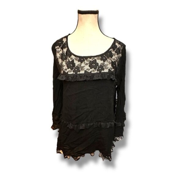 Women’s L Easel Black Lace Mesh Tiered Bell Sleeve Top