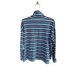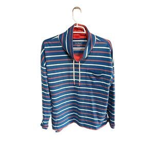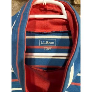 Women's L. L. Bean Large Petite Striped Pullover Drawstring 100% Cotton Hoodie B