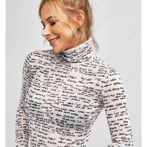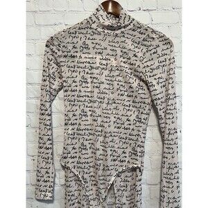 Women’s L Mesh See Thru High Neck Bodysuit With Pants Outfit Set Letter Graphic