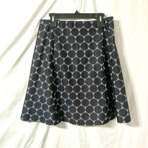 Size L. Renee C. by Stitch Fix Maybell Lace Detail A-Line Mini Skirt. The Maybell Lace Detail skirt is perfect for work or play, it's just super stretchy and pulls on and off so easily. The A-line fit makes it super flattering. Navy blue lace exterior overlay. Textured, high-quality material. Circle embroidered pattern. Elastic waistband. Light gray interior lining. Hits at the knee length. Fully lined interior. Made in USA. Made of 100% polyester. From a pet friendly home.