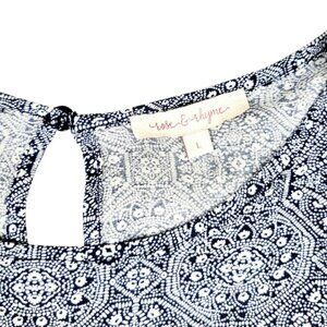 Womens L Rose & Rhyme Blue Cap Sleeves Elegant Design High-Low Pearl Keyhole Top