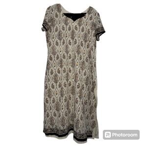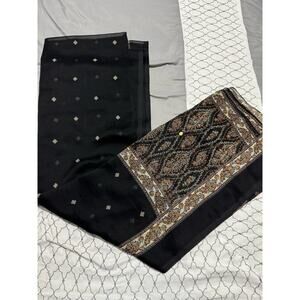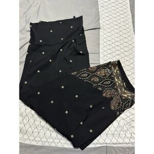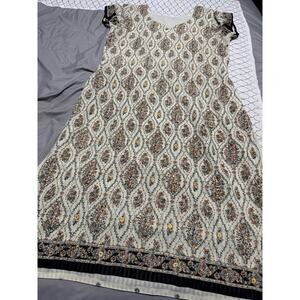 Women's ~L Shiny Cream & Black Indian Salwar Kameez / Punjabi