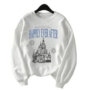Disney-themed sweatshirt featuring a castle and the phrase "Reach out and find your Happily Ever After" Women’s size large Women’s L nwot Disney sweatshirt castle Reach out & find your Happily Ever After