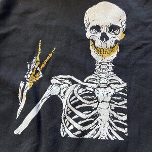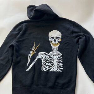 Womens L7 Medium Skeleton Skull Peace Halloween Hooded Sweatshirt