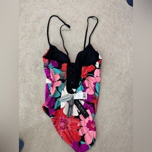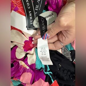 Women’s LA BLANCA One Piece Bathing Suit Sz 14 NWT. Tummy control. Reversible. Multicolored floral.