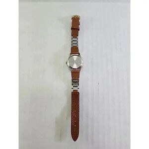 Womens LA Express Skeleton Gold Silver Tone Watch Leather Metal Band New Battery