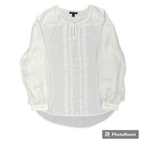 Women's LANDS' END Long Sleeve Blouse with Lace- Size 14