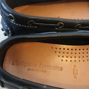Womens L'Artigiano Sorrentino Black Leather Flat Driving Shoes 39D US/9D*
