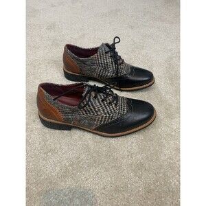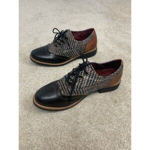 Women's L'Artiste by Spring Step Muggiasti Oxford Brogue Shoes Black Multi Sz 38. Good condition, but need to replace shoestring. See last photo.