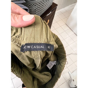 These are pre-owned LC Waikiki pants in a green color. They are made of a cotton blend fabric and have a drawstring waistband. The pants have two front pockets and two back pockets. The size is 42. The pants are in good condition with no visible imperfections. The pants are approximately 38 inches long and 32 inches wide at the waist.