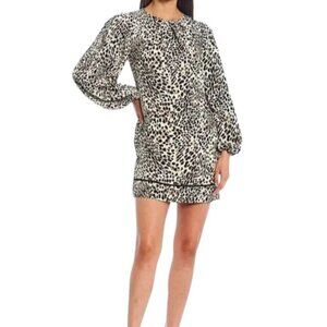 Women's - LDT Elizabeth Animal Print Long Blouson Sleeve Mini Dress, Size 10