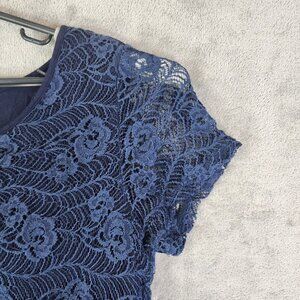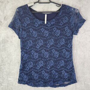Women's LEO & NICOLE Crochet Lace Scoop Neck Overlay Blouse Top Size S