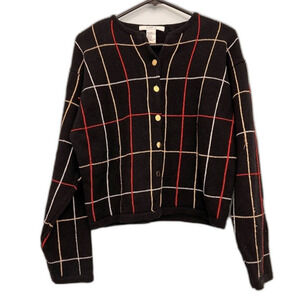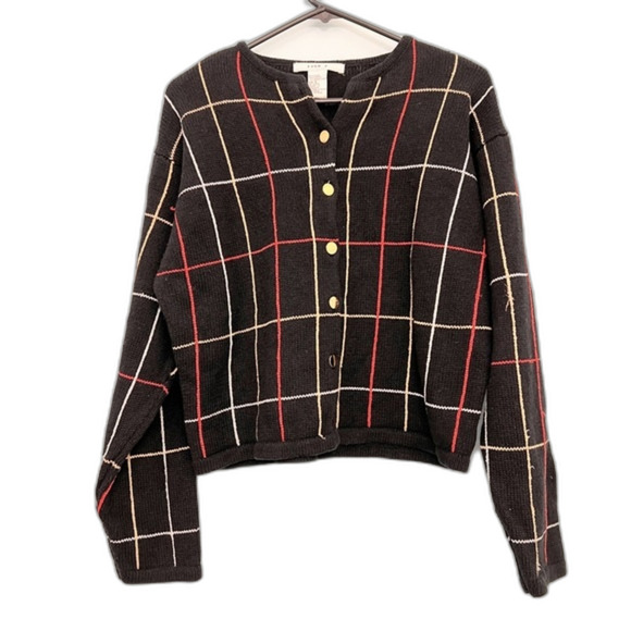 Women's LISE J. Vintage / Clasic Sweaters Casual Drop Shoulder Plaid Cardigan.