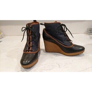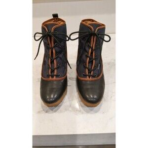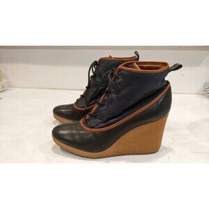 Women's L.L. BEAN SIGNATURE DUCKTRAP LACE UP PLATFORM WEDGE BOOTIES Size 7.5