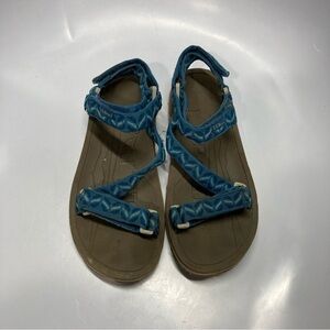 Women’s L.L. Bean Katahdin 4 point sandals blue geo design size 6