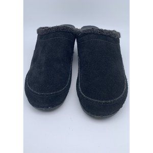 Womens L.L. Bean Slip On Clogs 6M Black Genuine Leather Open Back Mules Shoe