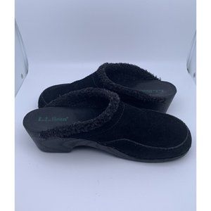 Womens L.L. Bean Slip On Clogs 6M Black Genuine Leather Open Back Mules Shoe.