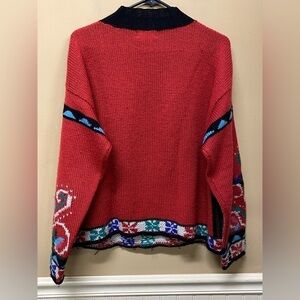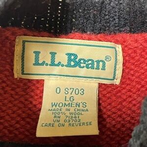 Womens LL Bean Vinatge Wool Knit Sweater Red Black Print Size L