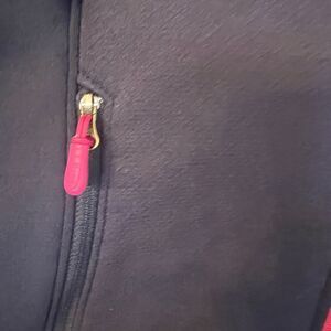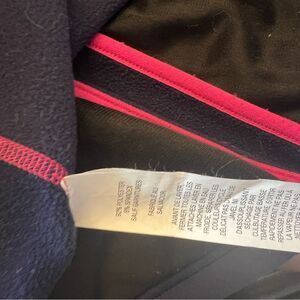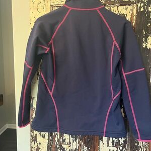 Women’s LL Bean lightweight polyester track sports jacket w pink trim piping.