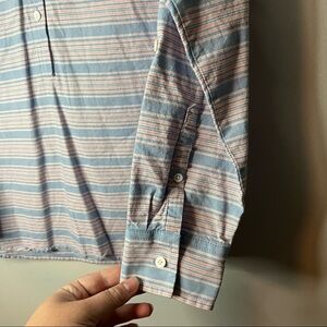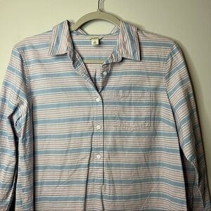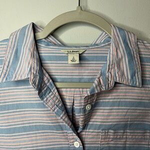 Women’s L.L. bean blue and pink striped button up shirt size small S
