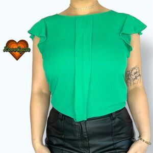 Women's LOFT Ann Taylor Green Flutter Sleeve Blouse – Size S