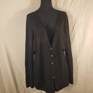 This versatile LOFT black cardigan is a wardrobe essential. Its classic design and comfortable fit make it perfect for layering over any outfit. The soft fabric and simple button closure provide a timeless look that can be dressed up or down. Add a touch of sophistication and warmth to your wardrobe with this must-have piece.