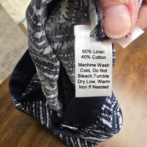 Excellent condition, women's LOFT blue, white & purple striped, linen blend skirt. This skirt is not lined and is lighter weight. This has a back zipper and buckle closure. This skirt lands right above the knees. This material doesn't stretch.