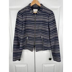 Women's LOFT Blue Striped Casual Zip-Up Jacket Size 4