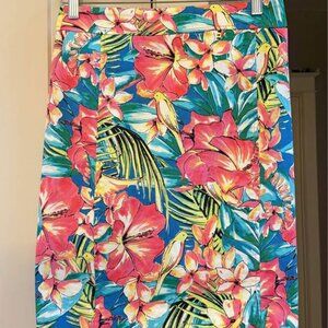Women’s LOFT Bright Blue, Pink, Yellow Tropical Patterned Pencil Skirt-Size 2