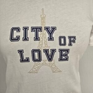 Excellent condition, women's LOFT "City of Love" with the Eiffel Tower cropped, white tee. This material stretches some.