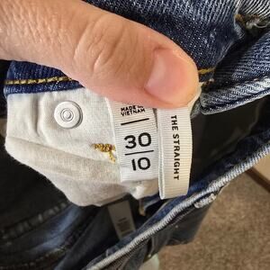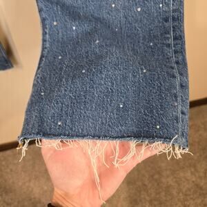 Excellent condition, women's LOFT "The Straight" jeans with rhinestone accents. These also have raw/fray ankles. This denim has minimal stretch.