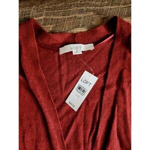 Womens L/Xl Loft Burnt Orange Sleeveless Knit Sweater Shawl Cardigan