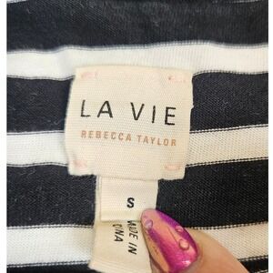 Keywords: La Vie Rebecca Taylor, Striped Top, Long Sleeve Top, Womens Top, Crew Neck, Black and White, Casual Top, Size S, Cotton Top, Comfortable Top, Everyday Wear, Contemporary Fashion