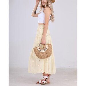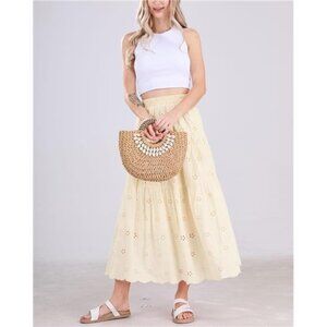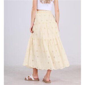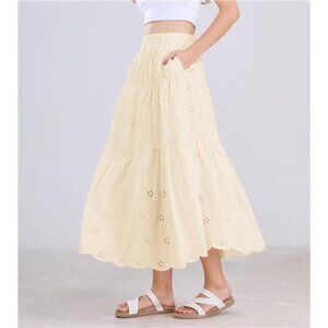 Women's Lace Embroidery Eyelet Boho Skirt Beige